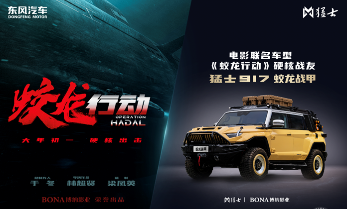 临近岁末,随着《蛟龙行动》开启春节档预售,“硬核搭子”猛士917蛟龙战甲也即将在大年初一迎来银幕首秀,一起开年提气。作为中国第一款电影联名车,这款为《蛟龙行动》量身定制的“超级战车”,由东风猛士科技携手博纳影业联合打造,是东风猛士高奢联名定制整车的生动缩影,也是有力见证。