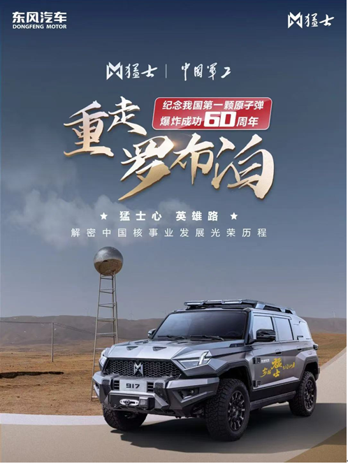 中国第一颗原子弹爆炸60周年之际,猛士又携手中国军工开启“重走罗布泊”特别活动,以猛士之心致敬“两弹一星”精神。