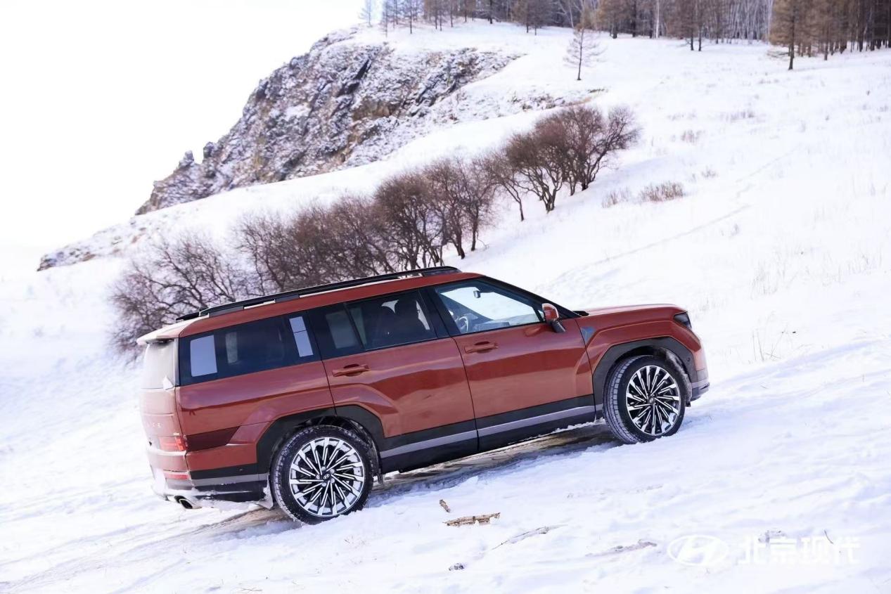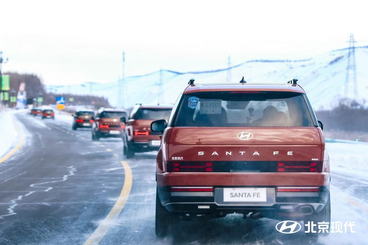 在零下30℃的阿尔山,冰雪覆盖了每一寸土地。这里的每一条道路都像是一场考验,测试着车辆的稳定性、动力分配和整体调校。而第五代胜达,不仅用HTRAC智能四驱和SFD智能减震系统打出了漂亮的组合拳,还用全方位的配置,展现了它在冰雪极寒条件下的从容与强大。