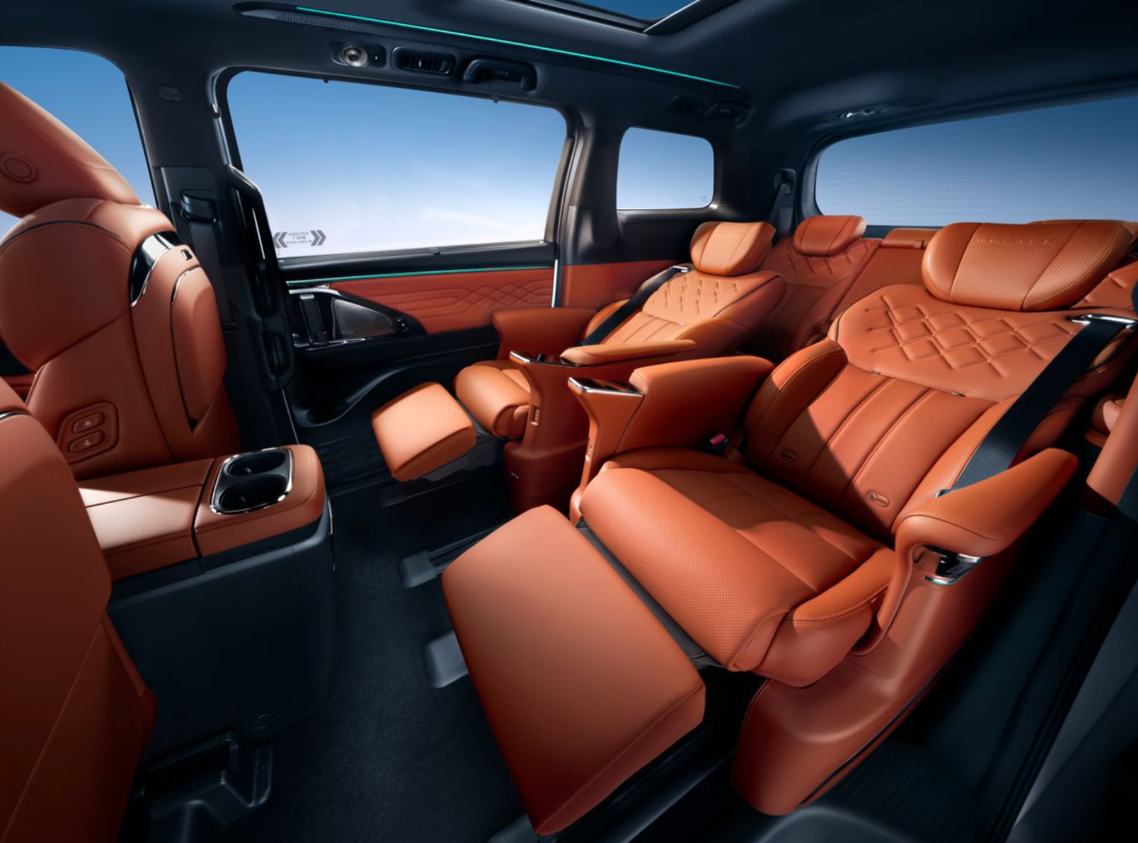 新车搭载了同级唯一的第一排五星SPA按摩座椅,配备16点三层气袋式按摩系统,有效缓解长途疲劳。坐垫可伸缩至570mm,即便身高2米的用户也能获得充分腿部支撑。副驾更支持“女王躺”模式,彻底改变第一排的乘坐体验。