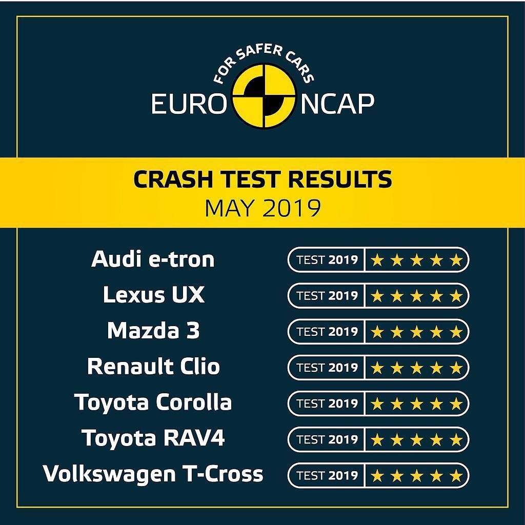 欧盟新车安全评鉴协会官方网站Euro NCAP日前公布5月份新车撞击测试报告,当中包含全新第五代丰田RAV4、全新第四代马自达3、本田CR-V、雪铁龙C5 AIRCROSS、宝马X5、奔驰G、奥迪Q3、卡罗拉旅行车、雷克萨斯UX、大众T-Cross以及电动车奥迪e-tron等14款热门车型入列。其中,除了雪铁龙C5 AIRCROSS(也就是国内的东风雪铁龙天逸)得到4星以外,其余全部获得5星评级。