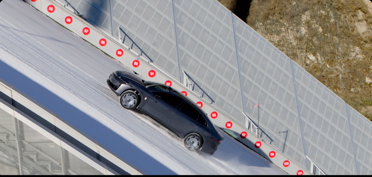 发布会前,昊铂A800成功登顶国家跳台滑雪中心“雪如意”。面对85米垂直落差、125米坡长、37.1度最大坡度,叠加冰雪湿滑,这场挑战验证了三电机四驱在极限工况下的可靠性。冰雪陡坡需要的不仅是爆发力,更是对附着力变化的实时感知——这一成绩比任何实验室数据都更具说服力。