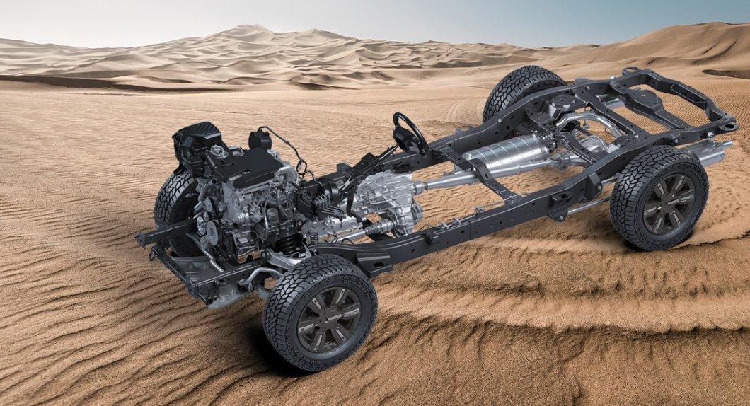 进入到“硬核越野”的部分,无论是领地还是坦克300都选择了非常标准的解题思路,均采用了非承载式车身设计。但在悬挂结构上领地更为“硬核”一些,领地的后悬挂为整体桥形式,应对长途穿越与越野场景的颠簸路面时可靠性更高。坦克300的后悬挂则为多连杆整体桥结构,在资深越野爱好者的观念中领地的这种悬挂形式更为硬派。在传动系统方面两台车都采用了“分时四驱”结构,并且都配备了前后桥差速锁与可以完全锁止的中央差速器。