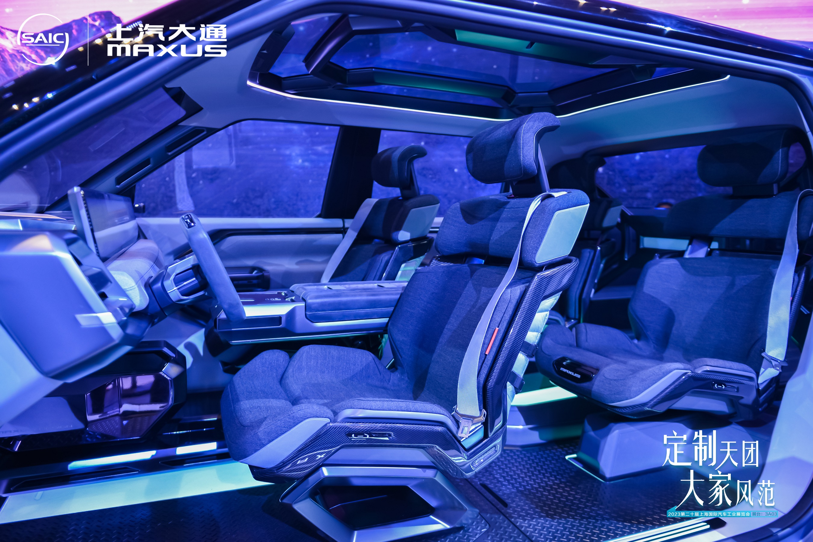 GST概念皮卡以“星际探索”为设计主题,在外饰上展示出“新电气化机甲”设计美学。整车内饰设计也从宇宙空间站获得美学灵感,迎合皮卡玩家对多维空间拓展的需求,副驾座椅既可向外旋转45°开启迎宾模式,又可向后旋转180°秒变高级卡座,重构车内空间。