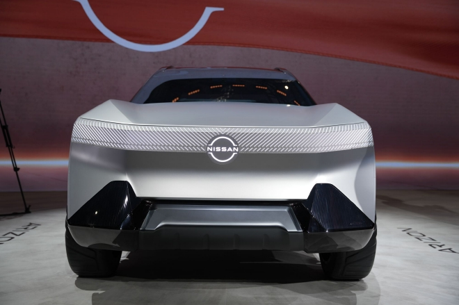 日产Arizon是纯电动SUV概念车型,由中国设计师主导设计,外观极具科技感。该车基于联盟CMF-EV平台打造,采用了低重心车身及开放式无B柱结构,穹顶则采用大面积自动调光玻璃。