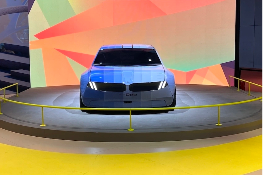 内饰方面,宝马i Vision Dee概念车首次采用了全新的先进平视显示系统,没有任何物理显示器,只有前风挡玻璃呈现的投影技术展示车内所有的显示内容,同样也没有任何的物理按键。车辆的大灯和封闭式双肾进气格栅共同组成了车外人机情感交互模块,汽车能够做出不同的“面部”表情,表达情感,例如喜悦、惊讶或赞同。