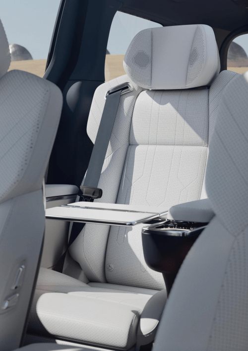 二排配备头等舱航空座椅、睡眠头枕、一体式宽大扶手,座椅具有加热、通风、按摩、记忆功能、腿托等功能,头枕则集成了雅马哈音响。内饰用料上采用了Soft NAPPA全粒面头层真皮,乘坐舒适度极佳。但航空座椅并没有留出中央通道,后排乘客出入时,第二排的乘客也要受到影响,这一点也颇有争议。