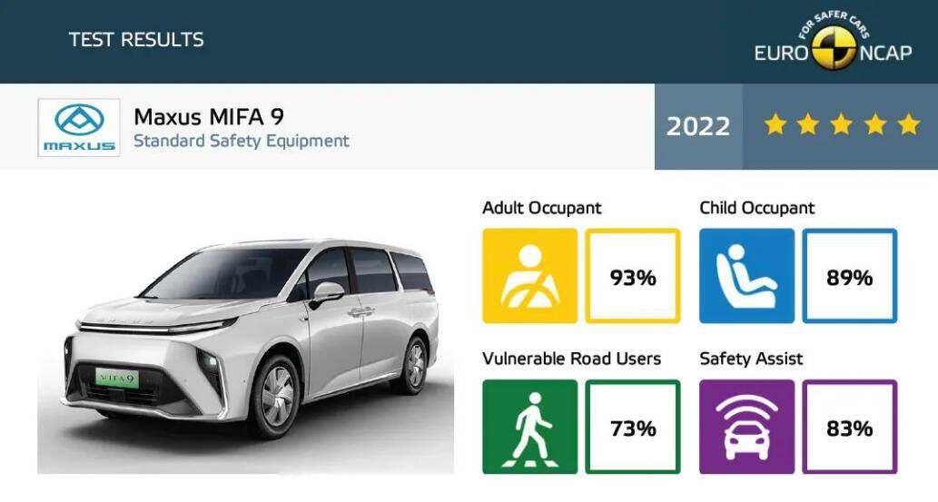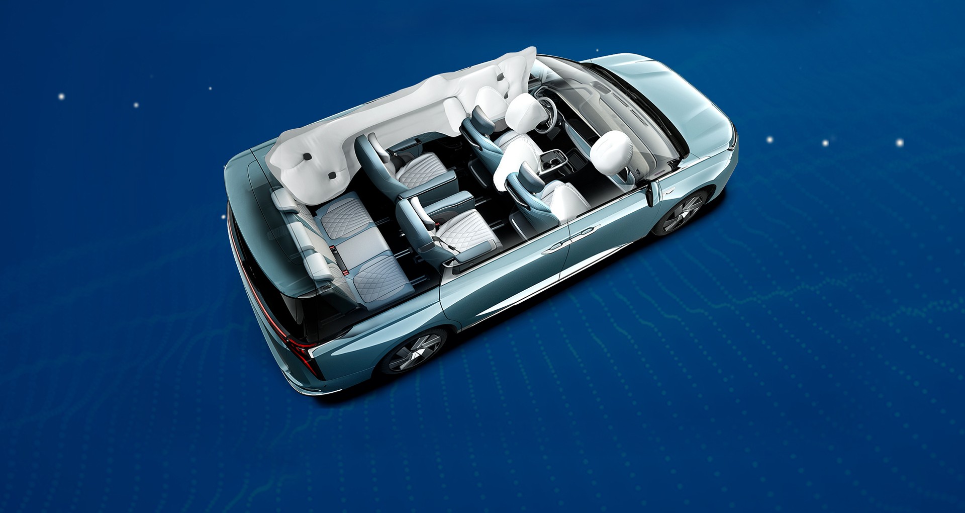 大家MIFA9配置了4个安全气囊和2个覆盖前中后三排的侧气帘,再加上同级中率先配备的驾驶座远端气囊,满足E-NCAP五星碰撞安全。
