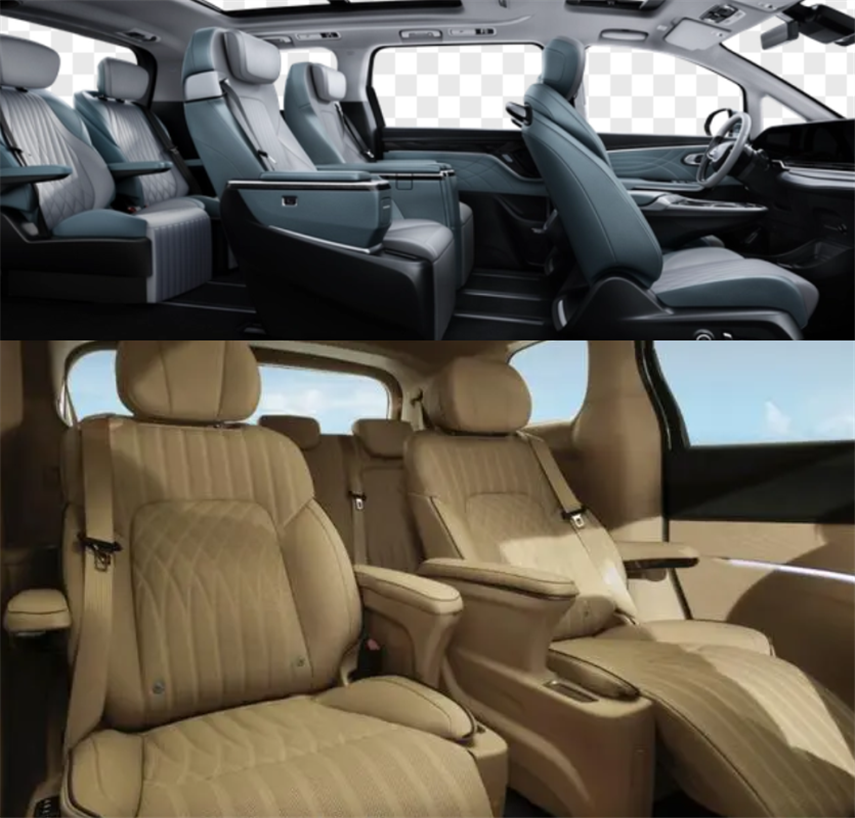 两者的乘坐空间均有2+2+3的7座布局,只不过大家MIFA9主打六座。但不管是六座还是七座,大家MIFA 9都设计了同级罕有的全三排电动滑轨,让这部MPV的座椅空间可以灵活多变,适配于多种用车场景。此外,大家MIFA 9有许多加分项,全车电动调节、加热通风按摩和腿托都有,三排座椅都不再是鸡肋。遗憾的是,梦想家虽然看上去材质也不错,但在座椅的智能化体验上并没有为三排提供多少谈资。