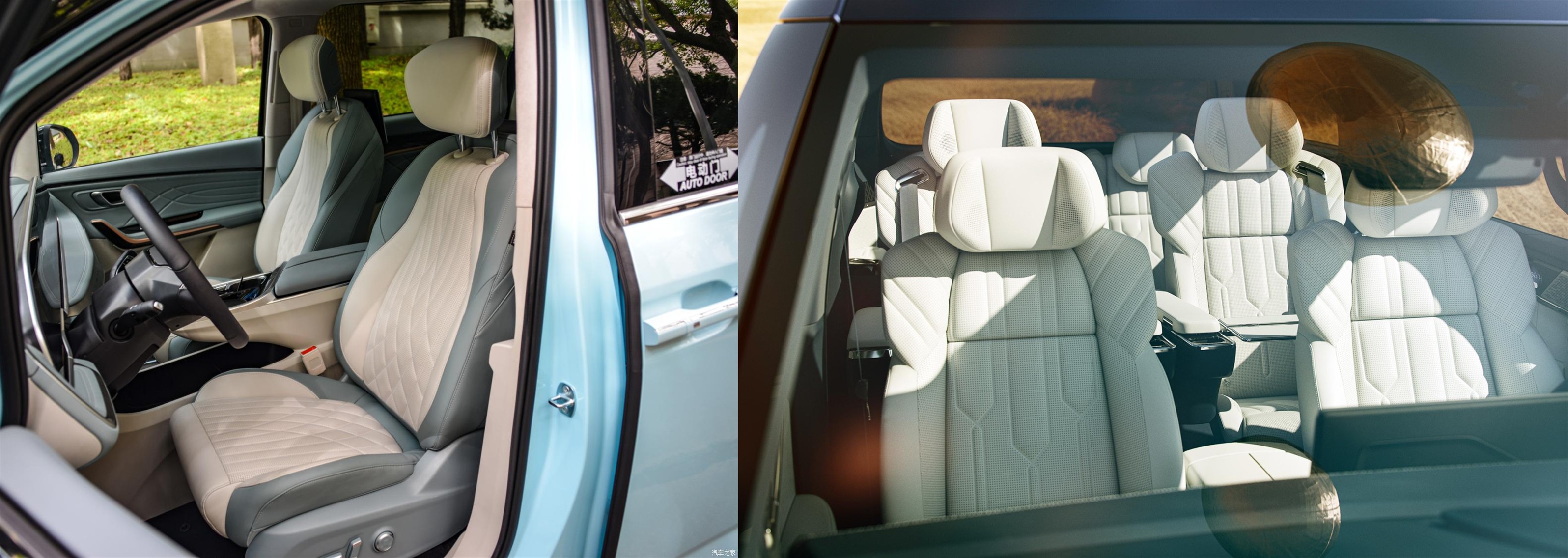 相比较之下,极氪009的长宽高分别为5209*2024*1856mm,在绝对的尺寸上,长度是上汽大通 大家MIFA 9更占优势。由于吉利缺乏设计制造MPV经验、用SUV的标准制造MPV,整车空间明显不足;另外,极氪009只提供6座其实是明显的妥协,由于轮包太大,这款车三排只能布置双人座位。