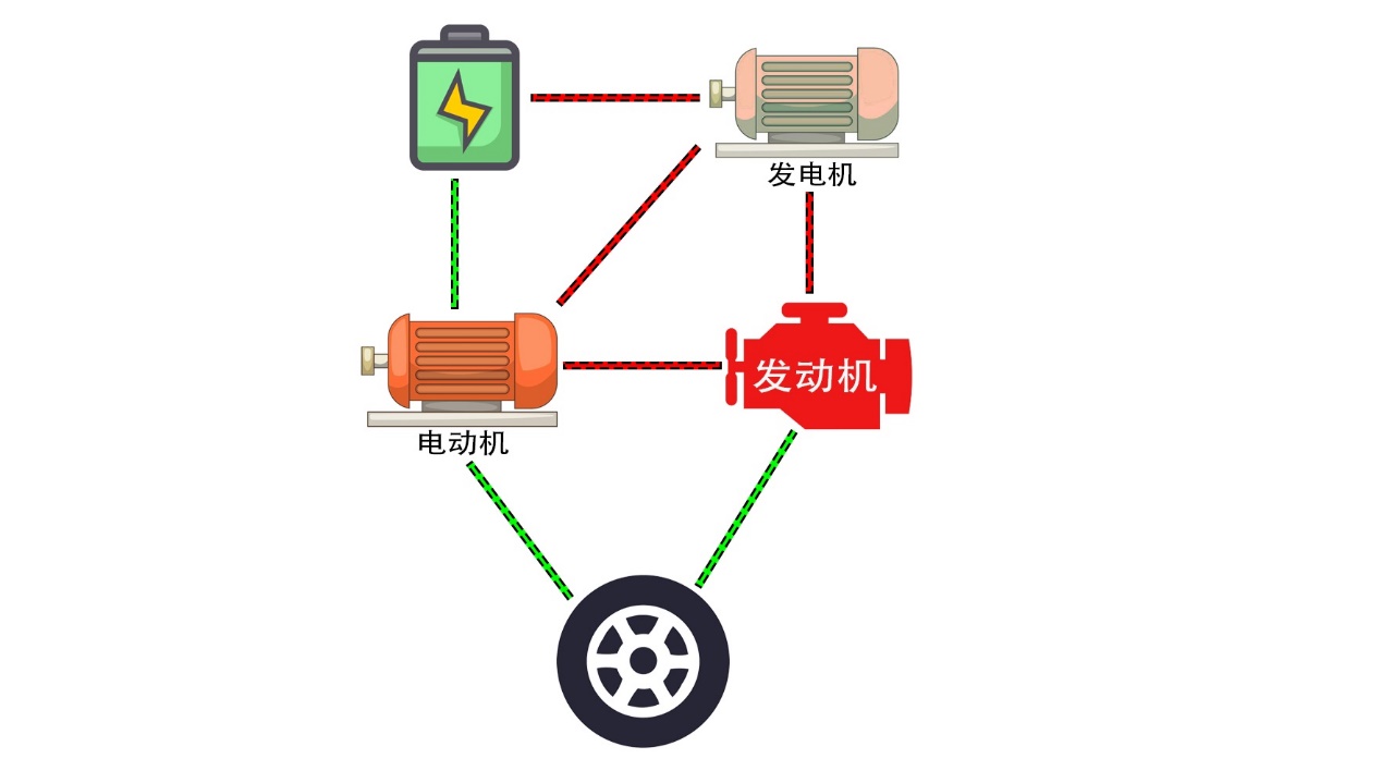 而增程式混动可以说是与传统混动截然相反的产物。增程式混动全程只能由电动机驱动车辆,发动机是作为发电机使用,可以为电池充电,也可以为电动机直接供能。所以从某种意义上来说,增程式混动系统的驾乘体验就是一辆纯电车。
