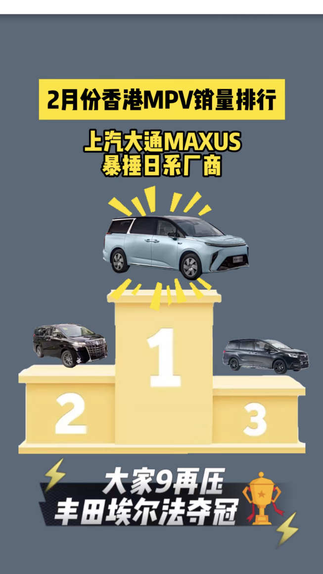 中国香港,作为中国最早的的商业中心之一,拥有大量的私人企业经营车和集团总裁,所以香港用户“豪”不意外地很早以前就把以舒适和空间著称的MPV当做保姆车使用,以至于香港向来有着“保姆车发源地”的别称。很长一段时间以来,真正在香港大卖的MPV有且只有埃尔法,直到去年四月,随着上汽大通MAXUS大家9上市,埃尔法才终于变得不香了。就刚刚过去的2月,大家9甚至以埃尔法1.4倍的199辆新车注册数成为当地MPV销量绝对的第一,其他像奔驰、雷克萨斯等更是毫无招架之力,以单月个位数的成交量黯然出局。那么问题来了,作为MPV的后起之秀,这辆国产MPV是靠什么彻底颠覆了香港MPV市场的?