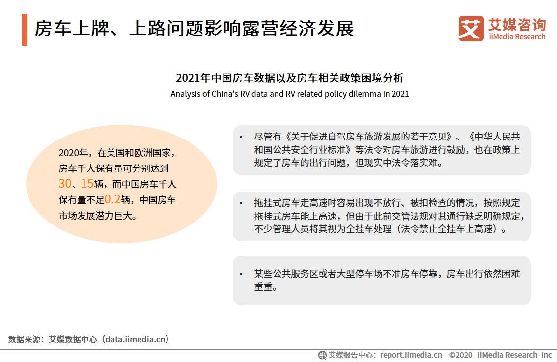 更关键的是,尽管国家层面多次出台相关法令,鼓励自驾房车旅游,促进经济发展,但现实生活中相应措施落实起来还是存在一定难度的。据艾媒咨询报告显示,拖挂式房车还是会出现禁止上高速、被扣检查、公共区域和大型停车场禁停等问题,显然对于一些刚开始玩房车旅行的新手创造了一系列的难题。
