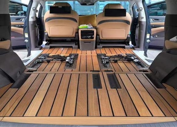以国内轻客龙头上汽大通V系轻客的木纹环保阻燃地毯举例,客舱地板覆盖物采用双层复合材料地毯表皮。其表面纹理逼真、触感舒适,同时具备优异的耐磨、防水防污性能且易清洗,符合,高强度,低气味的未来发展趋势。
