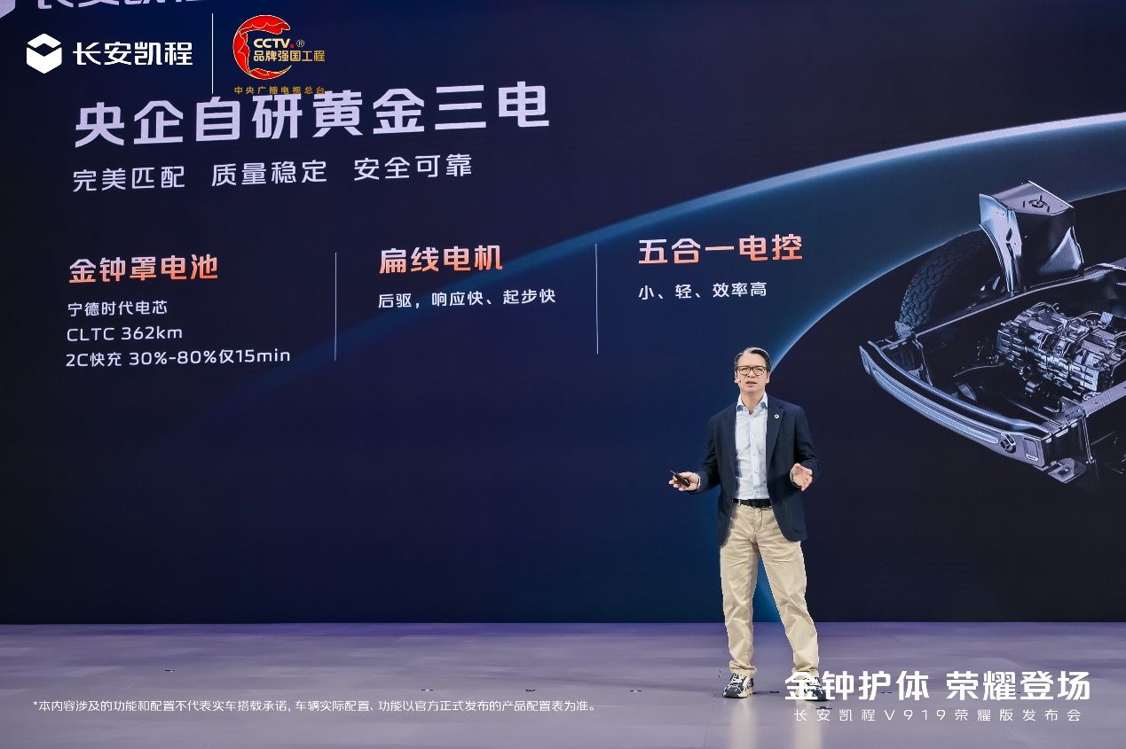 除了搭载宁德时代电芯的金钟罩电池,V919荣耀版更进一步融合中国长安自研新一代二合一扁线电机与中国长安首创的商用五合一动力域控制器,黄金三电系统深度协同,实现1+1+1>3的匹配效果,实现性能、效能的极大跃升。