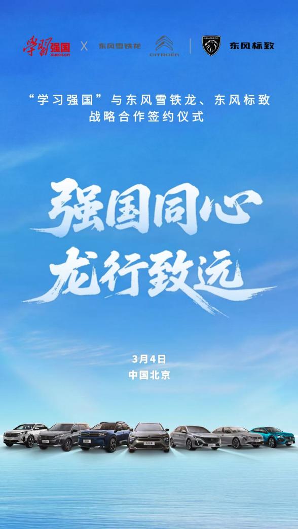 在2026年全国两会即将召开的重要时刻,国家级主流融媒体平台“学习强国”与东风雪铁龙、东风标致将于3月4日在北京国务院新闻办公室举行战略合作签约仪式。这不仅是“学习强国”首次与汽车企业展开全方位深度融合,更是主流权威媒体赋能实体经济、推动汽车工业品牌向上的创新实践,引发社会各界广泛关注与期待。