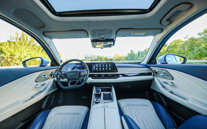 把目光转移到车内,大家还能看到艾瑞泽8全系标配的10.25英寸中控液晶大屏+10.25英寸全液晶仪表盘组成的一体悬浮式双联屏设计,搭配上中控台和门板上采用的仿木纹装饰,以及大面积的高档皮质进行包覆,在加上该车拥有近2.8米的同级领先轴距,使得其车内给人的视觉观感乃至乘坐舒适感,都丝毫不输于三四十万级的豪华轿车,难怪很多业内人士会赞叹这款车重新打造了“中国式豪华轿车”!